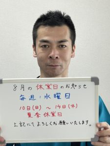 8月の休診日の お知らせになります。