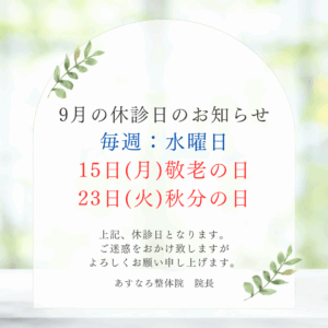 あすなろ整体院 9月のスケジュールのお知らせ /東戸塚/あすなろ整体院/ブログ