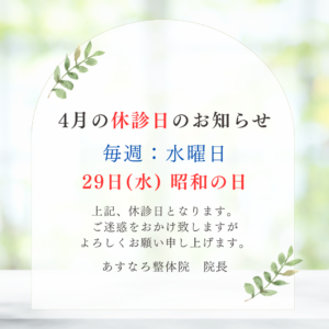 あすなろ整体院 4月の休診日のお知らせ【東戸塚 整体 腰痛】花粉の時期に増える不調と対策